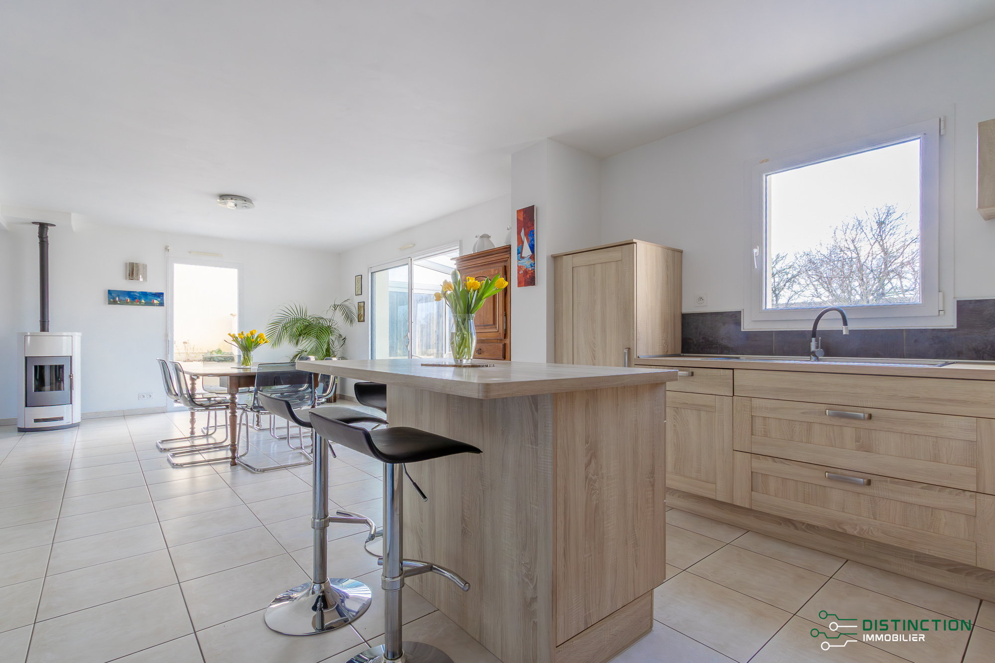 EXCLUSIVITÉ - DISTINCTION IMMOBILIER. Dans un quartier résidentiel et à proximité du bois du Val du Saint Martin, cette maison dispose de 170m2 habitables sur deux niveaux. L’entrée avec placard mène à une vaste pièce de vie comprenant une cuisine aménagée et équipée, prolongée par une véranda baignée de lumière donnant sur un agréable jardin sublimé d’un potager permaculture. Une chambre comprenant une salle d'eau vient confirmer la vie de plain-pied. A l’étage, un palier avec son espace bureau propose 4 chambres et une salle d’eau. Edifiée sur une parcelle close de 734m2, un grand garage attenant avec un grenier et une buanderie donnent une touche finale à ce bien parfaitement entretenu et complet. Les informations sur les risques auxquels ce bien est exposé sont disponibles sur le site Géorisques http://www.georisques.gouv.fr. Prix de vente 640 500€ FAI, les honoraires agence de 5% sont à la charge de l’acquéreur soit un prix de vente net vendeur de 610 000€. Distinction Immobilier (RCS. Saint- Nazaire 897 587 946) 02 51 74 59 7