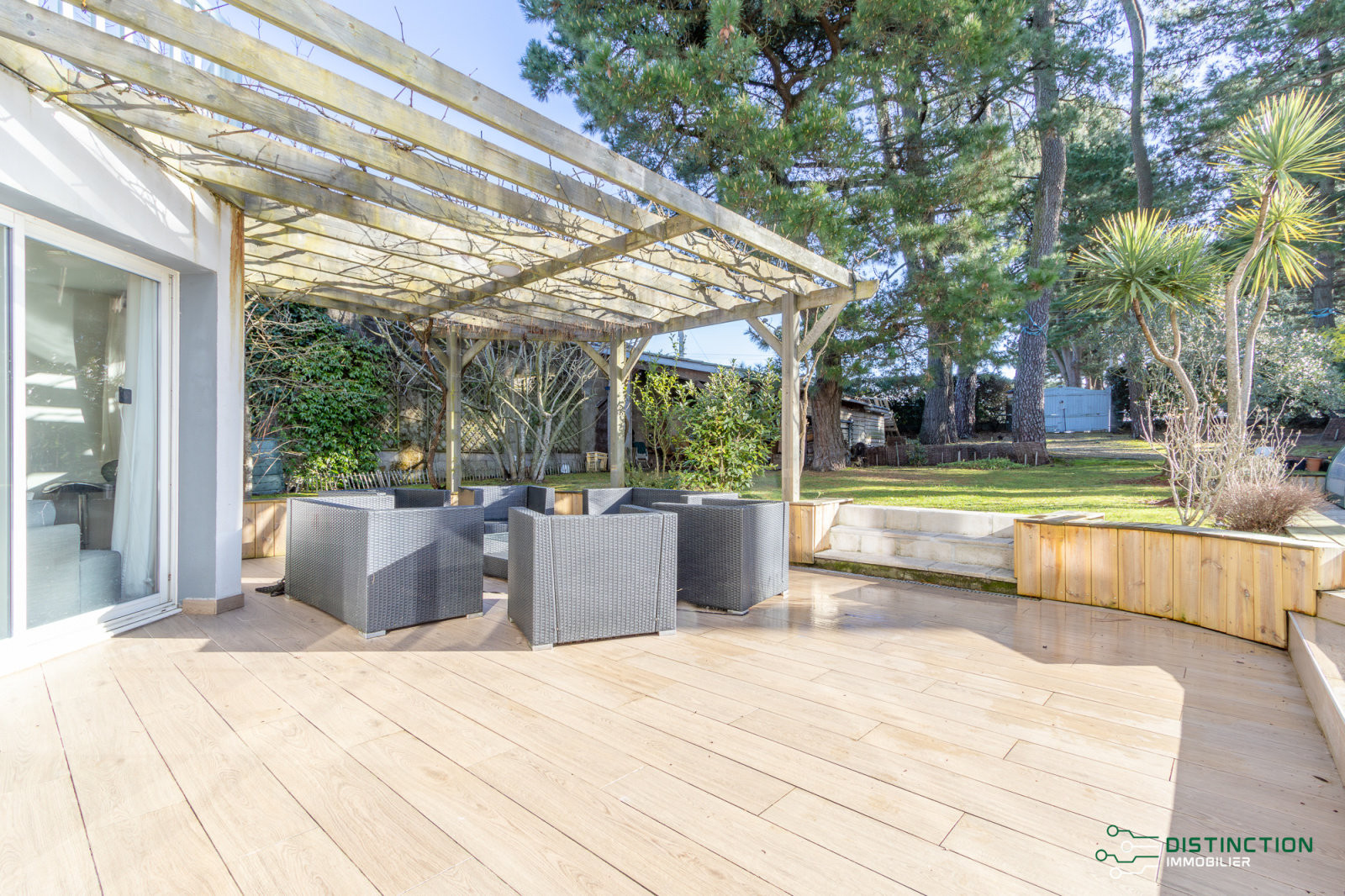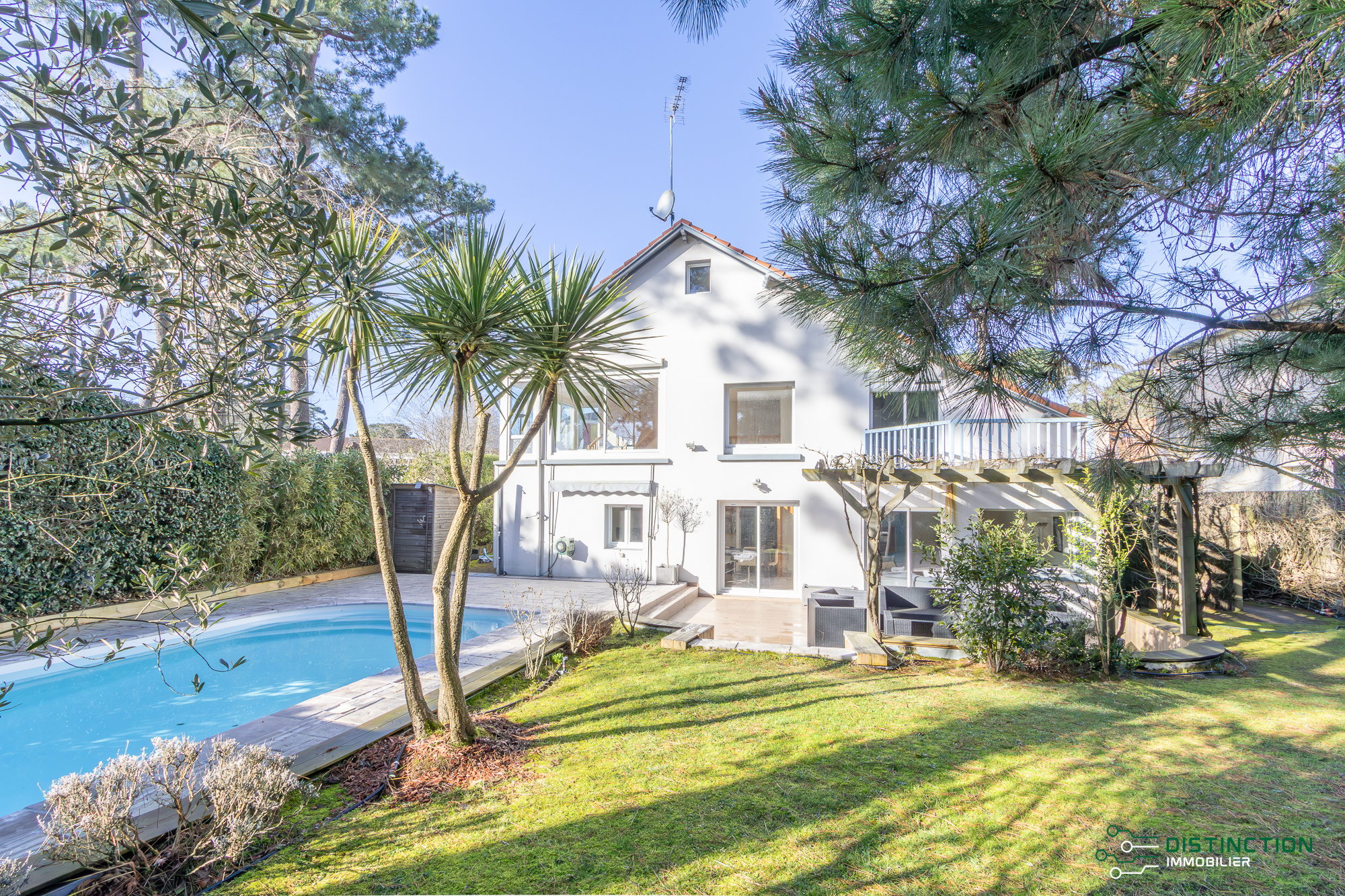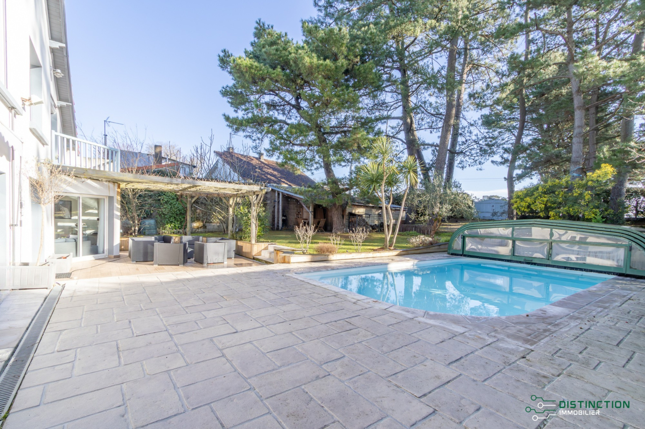 EXCLUSIVITÉ - DISTINCTION IMMOBILIER. À deux pas de la plage et du centre-ville, au cœur d’un environnement privilégié bordé de pins, cette charmante maison brévinoise se déploie sur trois niveaux et dispose d’une surface au sol de 195m2 dont 154 m2 habitables. L’entrée avec vestiaire s’ouvre sur une cuisine aménagée équipée prolongée d’une double réception salon/séjour bénéficiant d’une magnifique hauteur sous plafond et agrémentée par sa cheminée insert. L’ensemble baigné de lumière de par ses multiples baies vitrées donnant sur la terrasse sublimée du panorama imprenable de son jardin et de sa piscine. Un bureau et une buanderie complètent la distribution de plain pied. Au premier étage, une mezzanine entièrement vitrée, aménagée en espace bureau, surplombe la pièce de vie et bénéficie d’une vue dégagée sur le jardin et les pins environnants. Ce niveau comprend également deux chambres, dont l’une avec accès à un balcon privatif, ainsi qu’un dressing et une salle de bains. Le dernier étage se compose de deux chambres supplémentaires et d’une salle d’eau. Édifiée sur une parcelle close et paysager de 853m², un abri de jardin complété d’un préau donne une touche finale à ce bien. Une maison offrant l’ensemble des prestations recherchées pour une qualité de vie privilégiée en bord de mer et bénéficiant d’un emplacement de premier choix. Les informations sur les risques auxquels ce bien est exposé sont disponibles sur le site Géorisques http://www.georisques.gouv.fr. Les informations sur les risques auxquels ce bien est exposé sont disponibles sur le site ://www.georisques.gouv.fr. Prix de vente 549 500€, les honoraires d'agence sont à la charge du vendeur. Distinction Immobilier (RCS. Saint- Nazaire 897 587 946) 02 51 74 59 77.