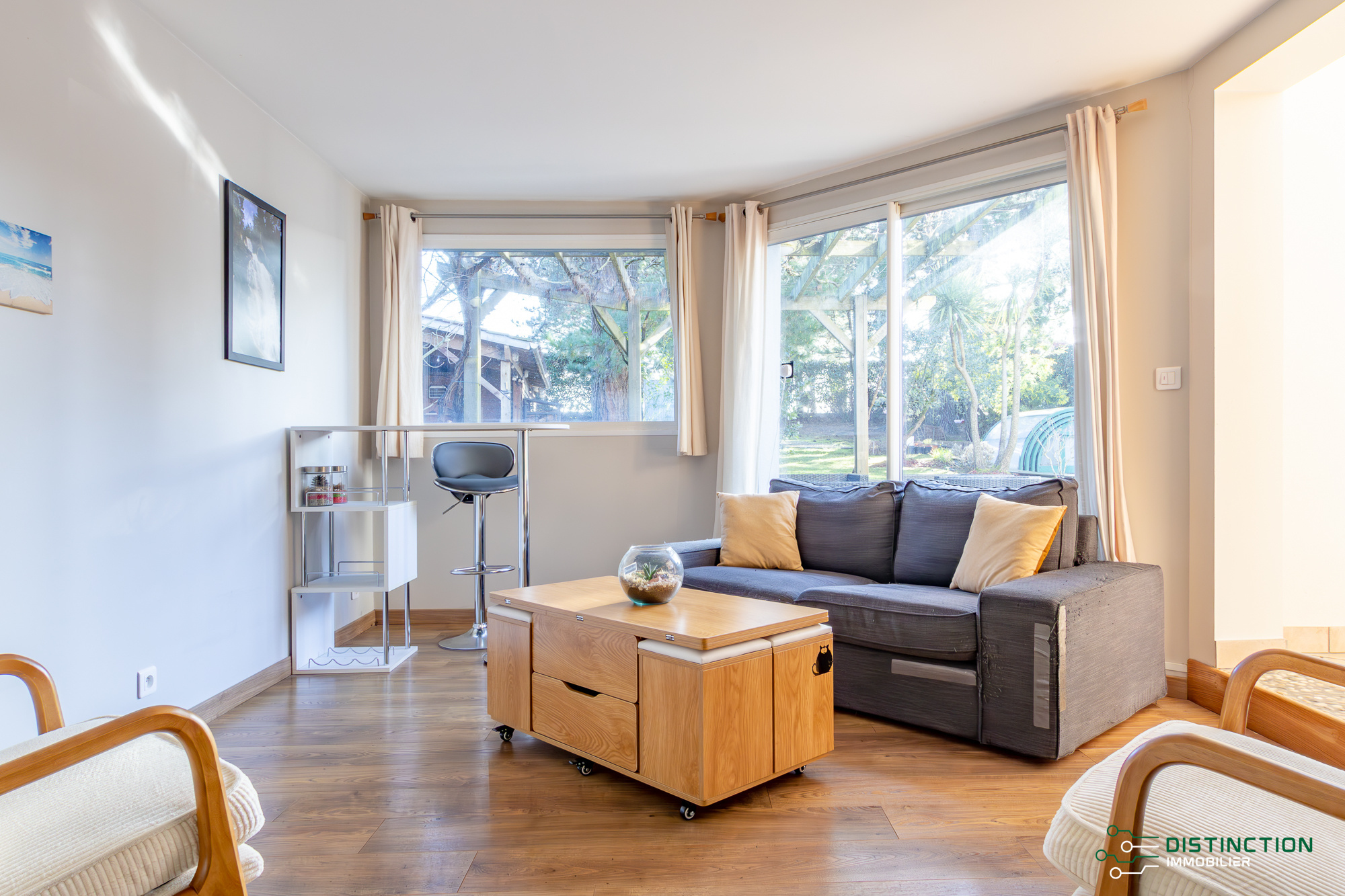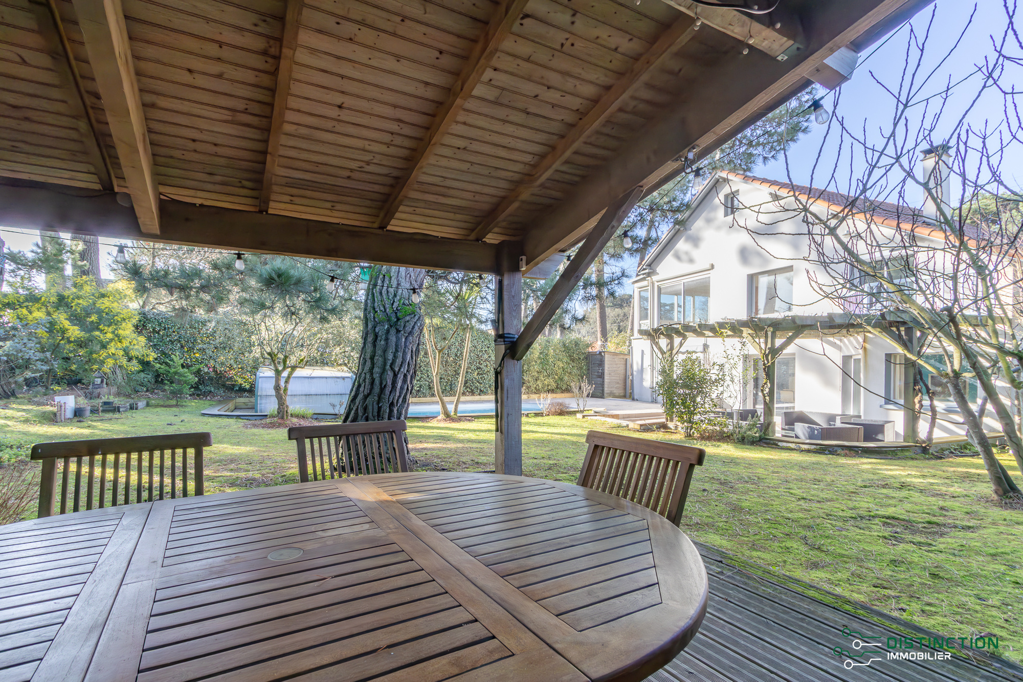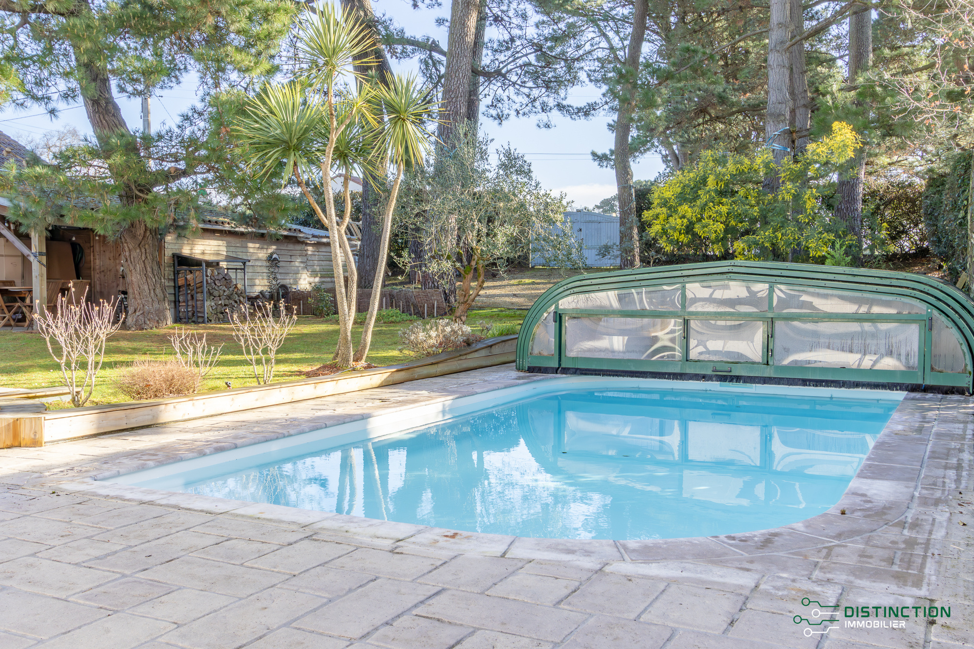 EXCLUSIVITÉ - DISTINCTION IMMOBILIER. À deux pas de la plage et du centre-ville, au cœur d’un environnement privilégié bordé de pins, cette charmante maison brévinoise se déploie sur trois niveaux et dispose d’une surface au sol de 195m2 dont 154 m2 habitables. L’entrée avec vestiaire s’ouvre sur une cuisine aménagée équipée prolongée d’une double réception salon/séjour bénéficiant d’une magnifique hauteur sous plafond et agrémentée par sa cheminée insert. L’ensemble baigné de lumière de par ses multiples baies vitrées donnant sur la terrasse sublimée du panorama imprenable de son jardin et de sa piscine. Un bureau et une buanderie complètent la distribution de plain pied. Au premier étage, une mezzanine entièrement vitrée, aménagée en espace bureau, surplombe la pièce de vie et bénéficie d’une vue dégagée sur le jardin et les pins environnants. Ce niveau comprend également deux chambres, dont l’une avec accès à un balcon privatif, ainsi qu’un dressing et une salle de bains. Le dernier étage se compose de deux chambres supplémentaires et d’une salle d’eau. Édifiée sur une parcelle close et paysager de 853m², un abri de jardin complété d’un préau donne une touche finale à ce bien. Une maison offrant l’ensemble des prestations recherchées pour une qualité de vie privilégiée en bord de mer et bénéficiant d’un emplacement de premier choix. Les informations sur les risques auxquels ce bien est exposé sont disponibles sur le site Géorisques http://www.georisques.gouv.fr. Les informations sur les risques auxquels ce bien est exposé sont disponibles sur le site ://www.georisques.gouv.fr. Prix de vente 549 500€, les honoraires d'agence sont à la charge du vendeur. Distinction Immobilier (RCS. Saint- Nazaire 897 587 946) 02 51 74 59 77.